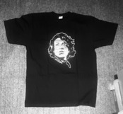 銀幕一楼 顔Tシャツの銀色バージョン。黒生地に銀色インクで顔をプリントしました。