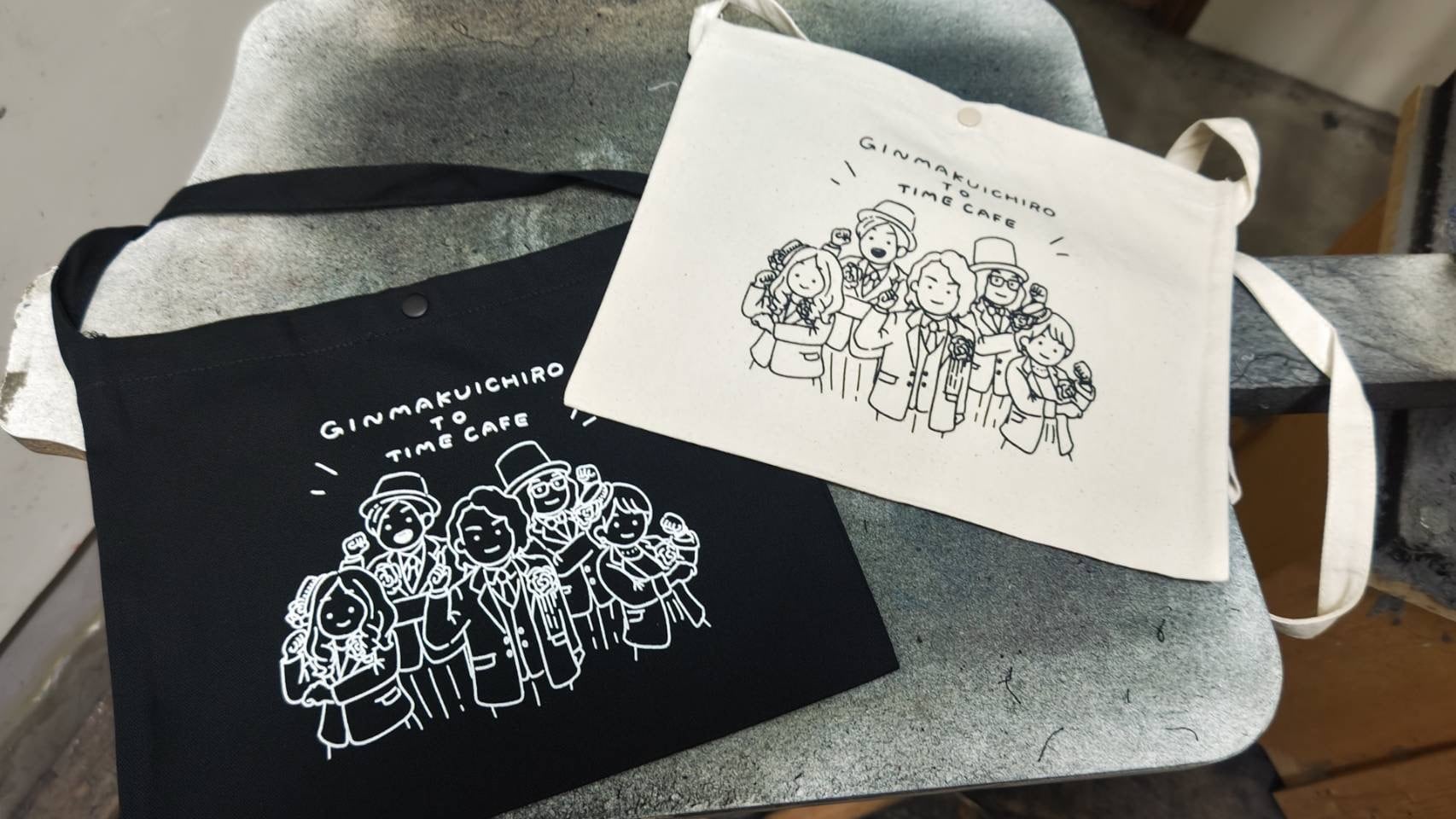 銀幕一座の可愛いイラストが入ったサコッシュです。